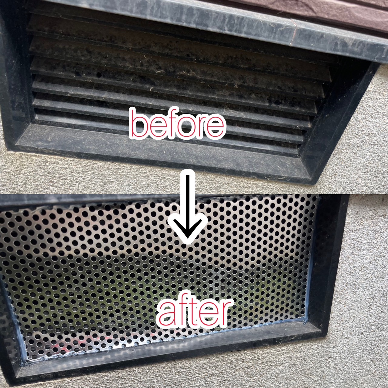 その後、屋外にて外部からの侵入口をくまなく探し、基礎周りや床下通風口、エアコンのスリムダクト、屋根上の板金周りなど多くの場所を完全に封鎖しました。