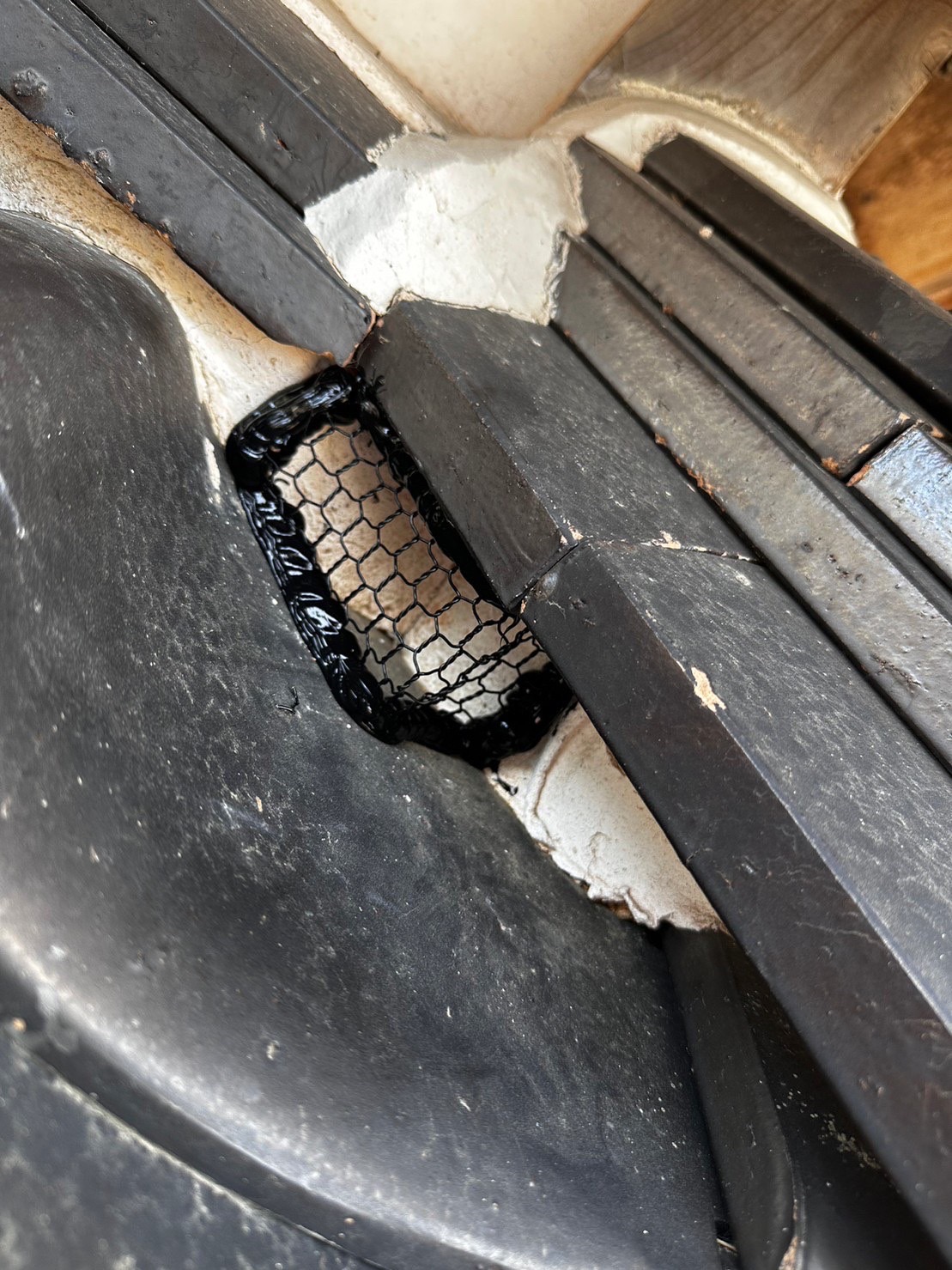 燻煙追い出し作業完了後外回りのネズミ、イタチの侵入口になっている穴を全て弊社が使っております金網で隅々まで封鎖を行い施行完了となりました