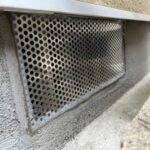 床下通風口が2ヶ所と基礎に隙間ができている場所にクリアーのコーキングで塞ぎました。