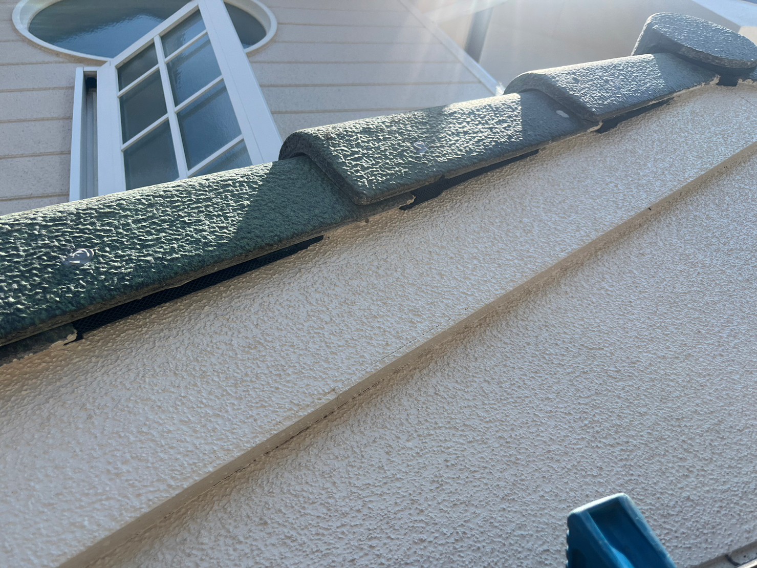 燻煙追い出し作業終了後、外部侵入口封鎖工事に取り掛かり瓦の隙間全てに通気性のある材料で綺麗に塞ぎのコーキングで固定しました。