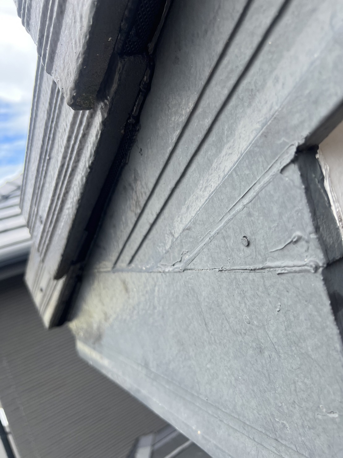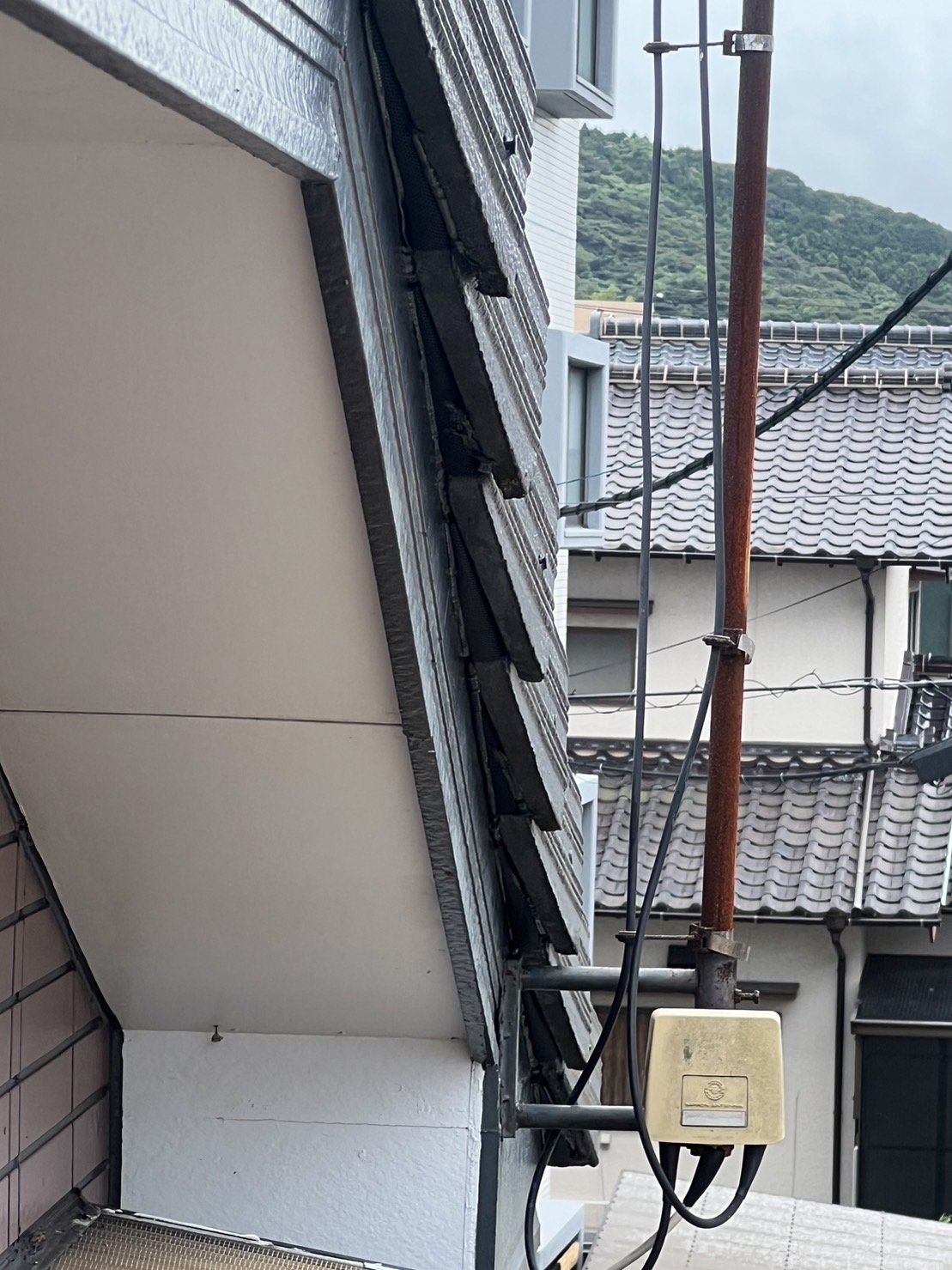 外部からのスプレー追い出し作業を終えた後に、瓦と破風板の隙間を通気性の取れる専用材料を用いて全て封鎖いたしました。
