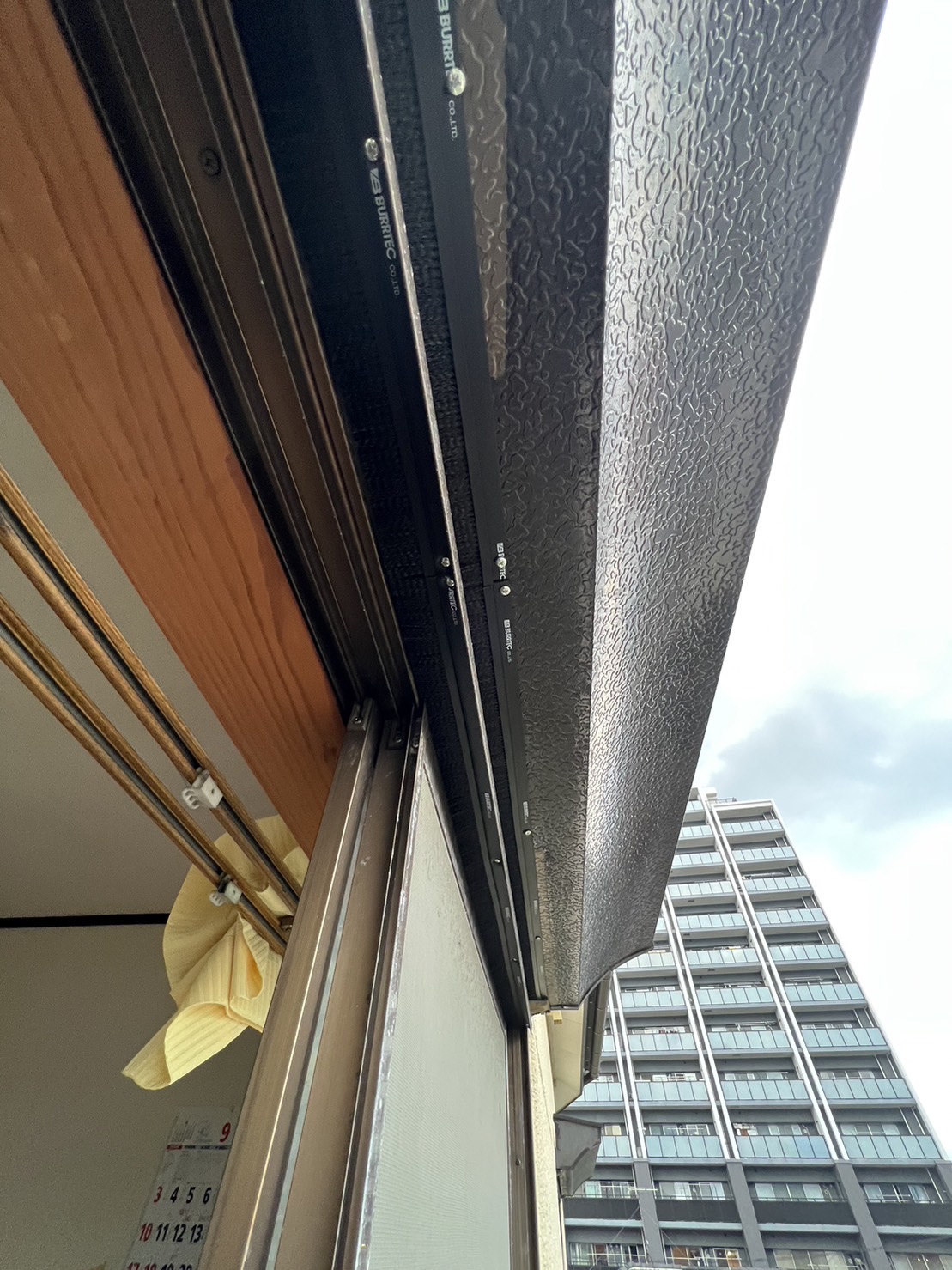 K様では2階の窓に取り付けられたシャッター5箇所に被害がありました。1度に全てのシャッターに追い出し作業をしてしまうと追い出し効果が薄くなったシャッターにコウモリが再度侵入してしまう可能性があった為、各シャッター1つずつ糞清掃をした後に追い出し作業をしました。その後、シャッターの内側と外側の隙間を専用材料で塞いだ後に薬剤散布をして2階の塞ぎは終了しました。