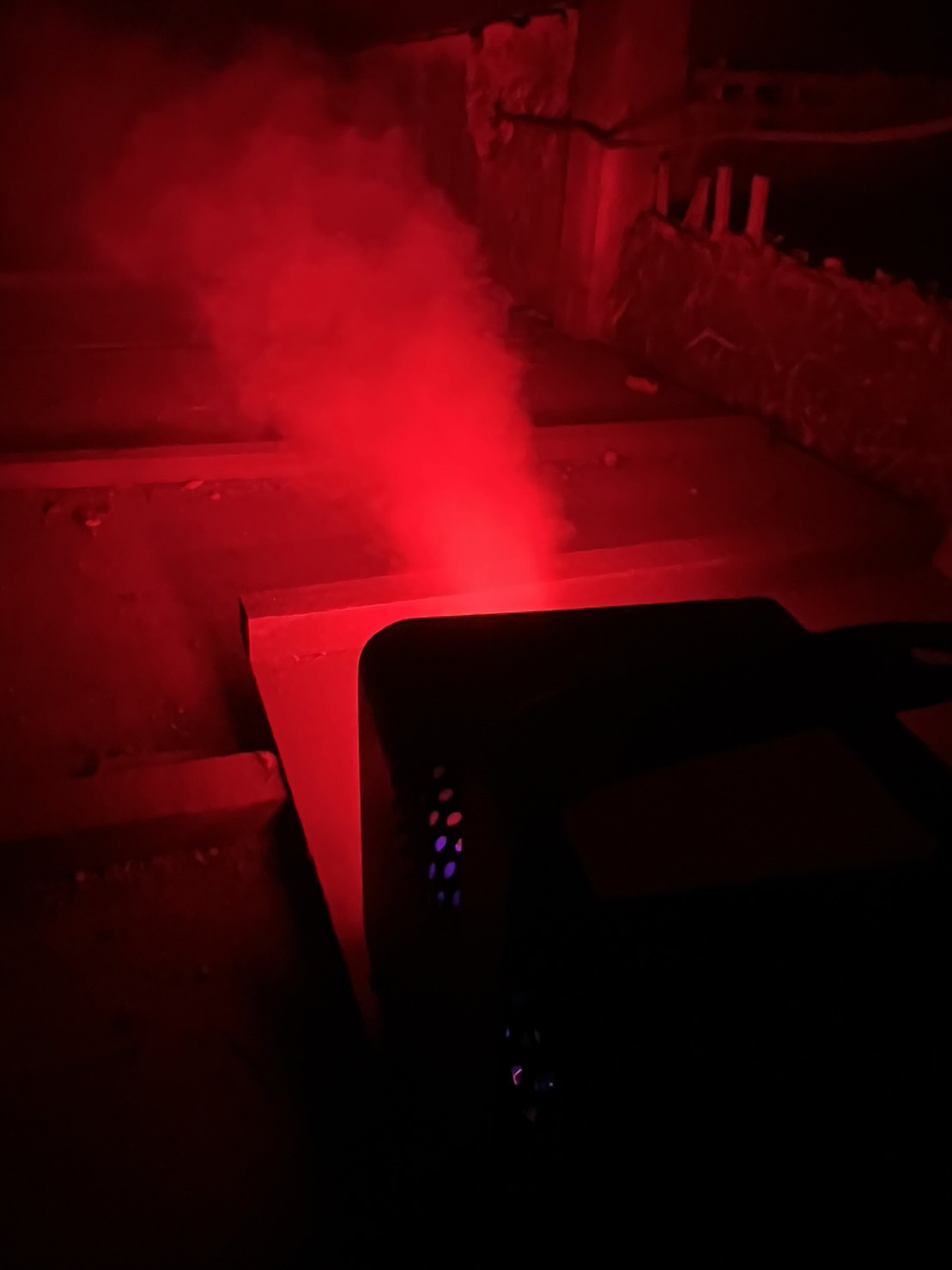 天井裏糞清掃が終わり、燻煙追い出し作業を行いました。