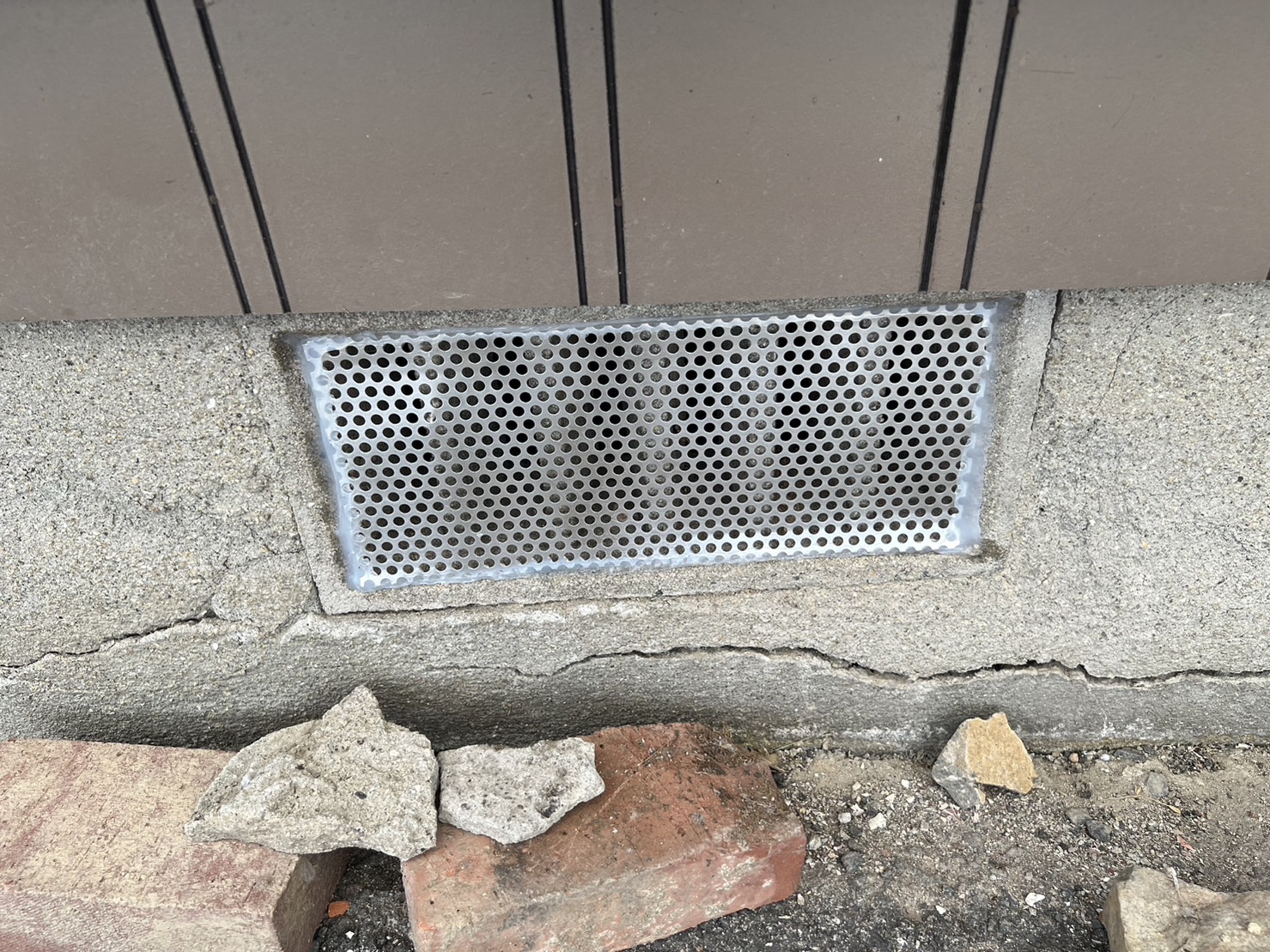 床下は人が入れるほど開けていたので、下地木をとパンチングメタルを使用して封鎖して施工終了となりました。