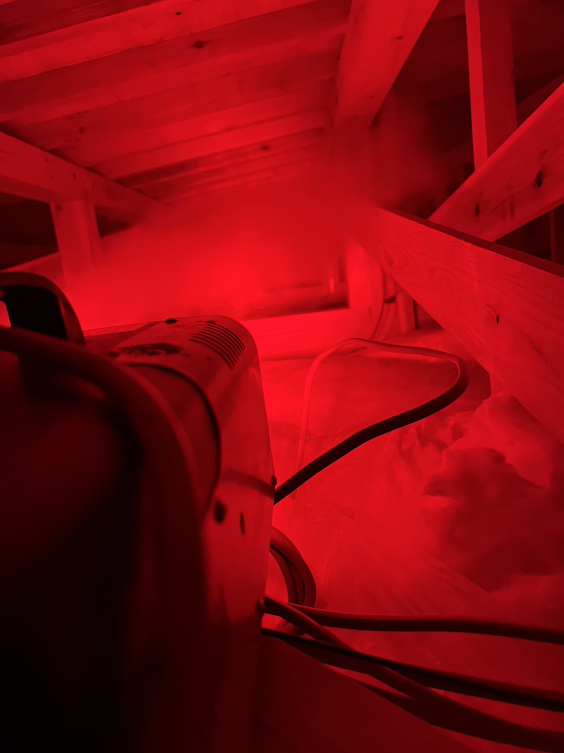 まずはじめに、2階天井裏糞清掃を行いました。断熱材やボード張り天井に糞は少なく、被害も少ない状況でした。