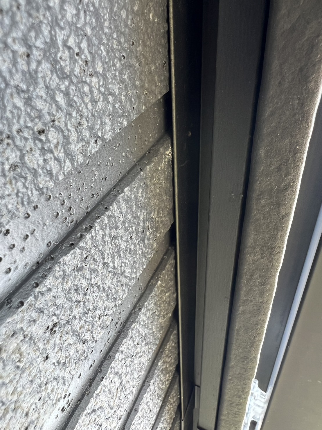 封鎖箇所はベランダの笠木と雨樋と外壁の隙間を専用材料とコーキングを用いて塞ぎました。
