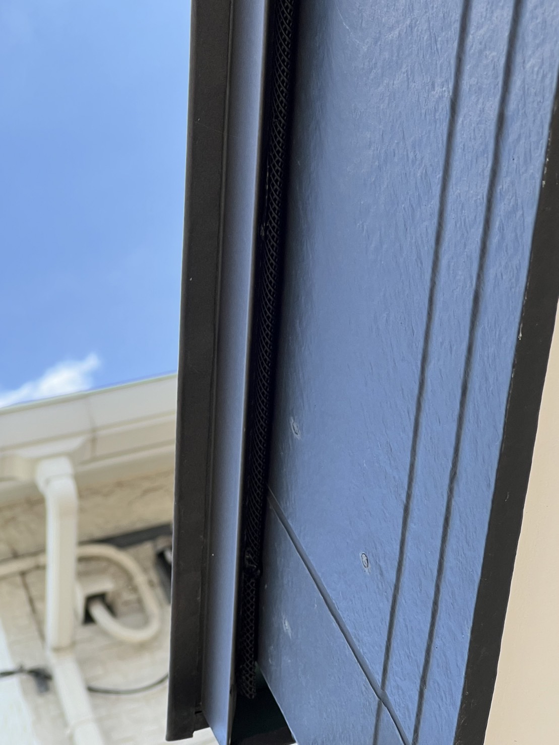 封鎖箇所は水切りという板金板と外壁の隙間、破風板と板金屋根の隙間、1階2階のシャッターが封鎖箇所でそれぞれに専用材料とコーキングを使用して封鎖させて頂きました。