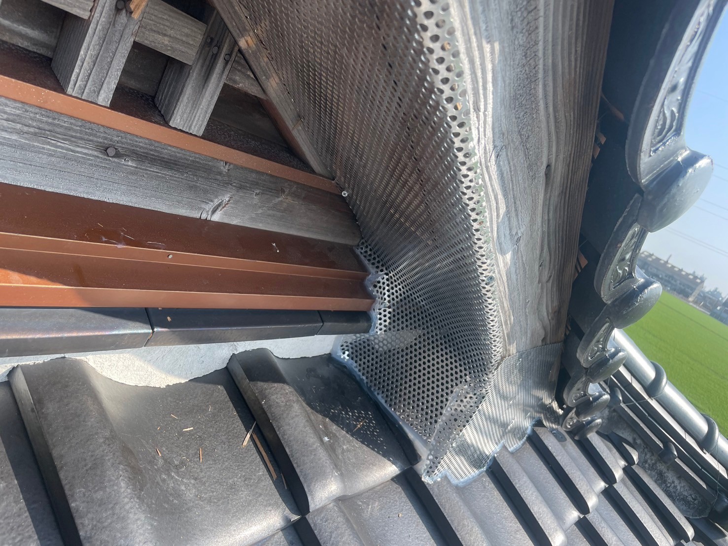 今回のお家は日本建築の建物だった為、入母屋、床下痛風口をメインで封鎖させて頂きました。