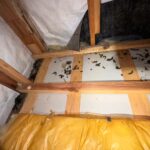 まず初めに1階2階の点検口から天井裏に入り、糞清掃を行いました。